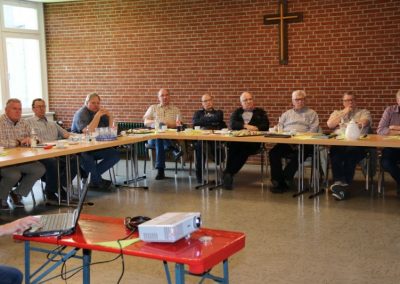 Obwohl die Schützensaison bereits auf Hochtouren läuft, nahmen jetzt 15 Bezirksbundesmeister und weitere Führungskräfte die Gelegenheit einer ganztägigen Schulung im Jugendheim in Rommerskirchen – Oekoven wahr. Gemeindereferent Martin Brendler aus Dormagen-Hackenbroich gab Einblicke in die Notwendigkeit „Augen auf – Hinsehen und schützen”. Dies sollen nicht nur Schlagworte sein, sondern jeden Einzelnen für den Schutz von Kindern u. Jugendlichen sensibilisieren.
