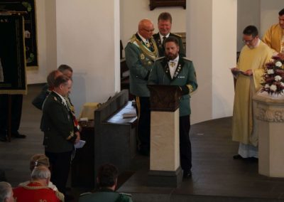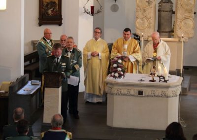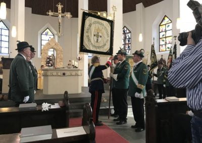 Bevor die eigent­li­che Stan­dar­ten­über­ga­be von der St. Sebas­tia­nus Bru­der­schaft Mecken­heim zur  St. Sebas­tia­nus Bru­der­schaft Ers­dorf-Alten­dorf der Bru­der­schaft des Diö­ze­san­kö­nigs­paa­res 2018/19, Hel­ga und Chris­ti­an Klein, erfolg­te, stell­te Diö­ze­san­bun­des­meis­ter Wolf­gang Kuck in einer Medi­ta­ti­on (Autor unbe­kannt) zum The­ma „Was ist Hei­mat ?“ eini­ge Denk­an­stö­ße in den Raum. „Hei­mat“ – ein Begriff, der sich auch im Leit­satz der Bru­der­schaf­ten „Für Glau­be, Sit­te und Hei­mat“ widerspiegelt.