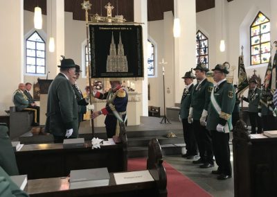 Die Stan­dar­ten­über­ga­be im Diö­ze­san­ver­band Köln setz­te den Schluss­punkt unter das Königs­jahr des Diö­ze­san­kö­nigs­paa­res 2017/18, Rei­ner und Petra Are­nz aus Meckenheim.