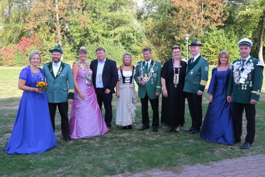 Gro­ßer Dank für die Arbeit hin­ter den Kulis­sen galt der Bru­der­schaft Mecken­heim mit Prä­si­dent Mat­thi­as Klem­mer. In gro­ßer Anzahl waren neben einer star­ken Abord­nung des Diö­ze­san­vor­stan­des, den Ver­tre­tern aus Bezir­ken und Bru­der­schaf­ten auch die neu­en Diö­ze­san­ma­jes­tä­ten die­ses Jah­res 2018/19 aus Aachen, Müns­ter, Trier und Essen erschienen.