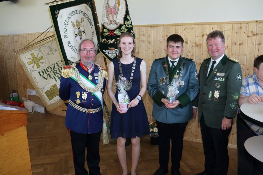 Ein beson­de­rer Will­kom­men­gruß galt den Diö­ze­san-Jugend­ma­jes­tä­ten, Diö­ze­san­schü­ler­prin­zes­sin Eme­ly Wies­ner und Diö­ze­san­prinz Tobi­as Lon­ge­rich,  die als Dan­ke­schön für ihr Kom­men ein klei­nes Prä­sent erhielten
