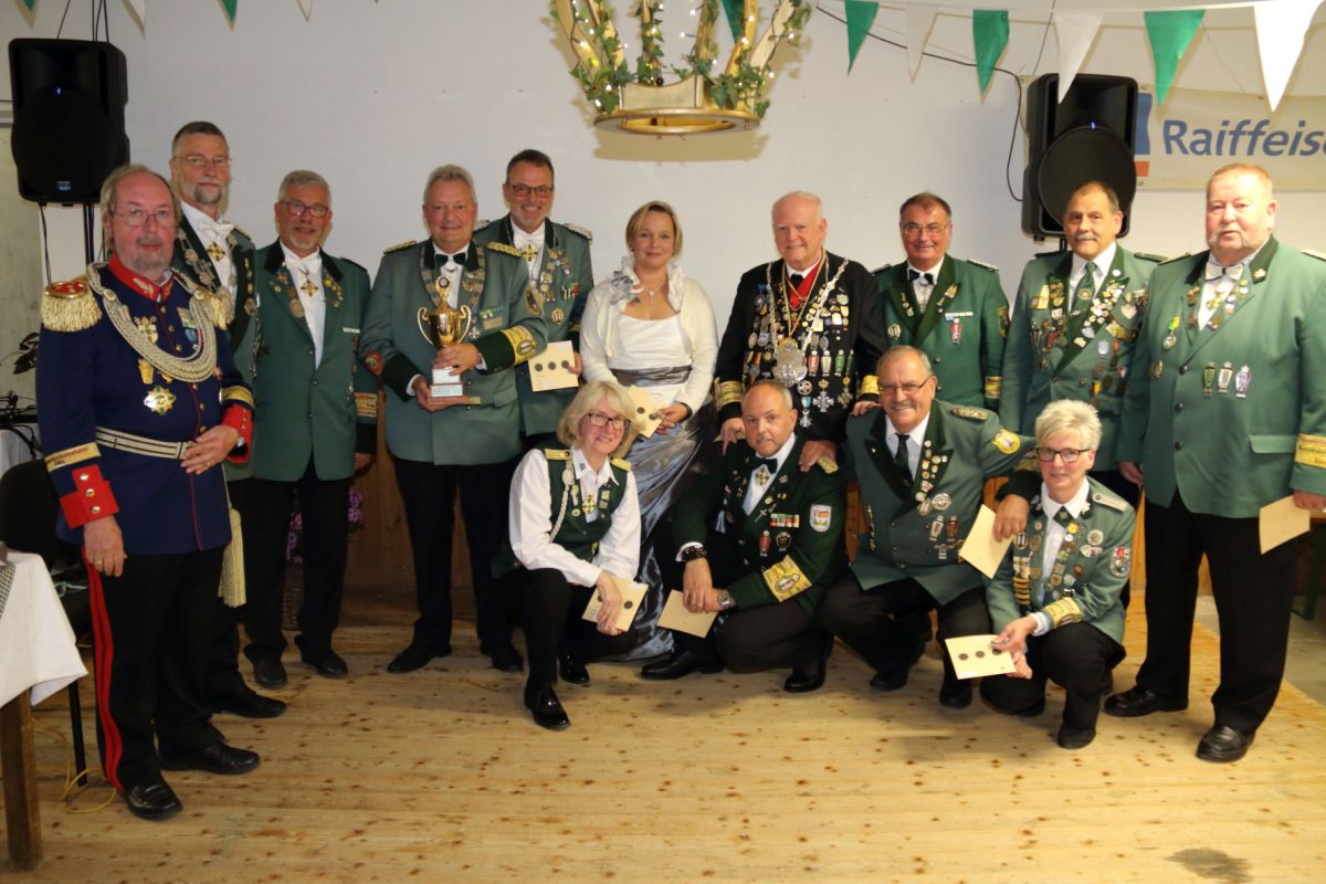 Im Rahmen der Standartenübergabe messen sich auch die Ex- Diözesanmajestäten in ihrer Treffsicherheit unter Leitung des Diözesanschießmeisters Kajo Klick. Hier errang Ferdi Lohmüller die Wanderkette und Walter Honerbach den Wanderpokal. Toll, dass sich hier 14 Ex-Diözesankönige in ihrer Diözesan-Schützenfamilie trafen, wobei diese Quote durchaus noch steigerungsfähig ist.