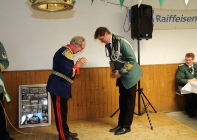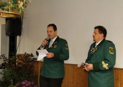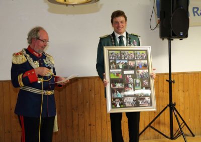 Und weiter : „Wir Schützen müssen unseren Leitsatz „ Für Glaube, Sitte und Heimat“ – leider nur allzu oft als Phrase gebraucht – überzeugend vermitteln. Es genügt nicht, diese Werte auf einer Standarte vor sich her zu tragen, sondern man muss sie auch überzeugend leben, vorleben. Das gelingt nicht unbedingt allen, weil uns im Zeitalter der Gleichzeitigkeit wenig Zeit bleibt, über Wesentliches nachzudenken.