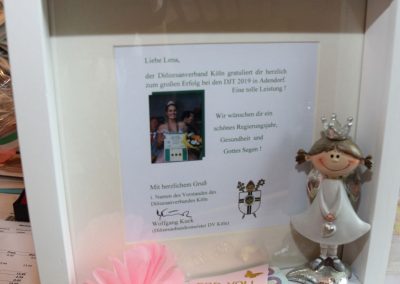Um den Weg ins „normale“ Leben zu versüßen, erhielt Helga Klein eine große Schultüte – mit Fotos aus ihrem Diözesankönigsjahr beklebt – und Christian Klein einen Kalender „Kölsch för ze plane“, damit sie mit den Terminen in Übung blieben.
