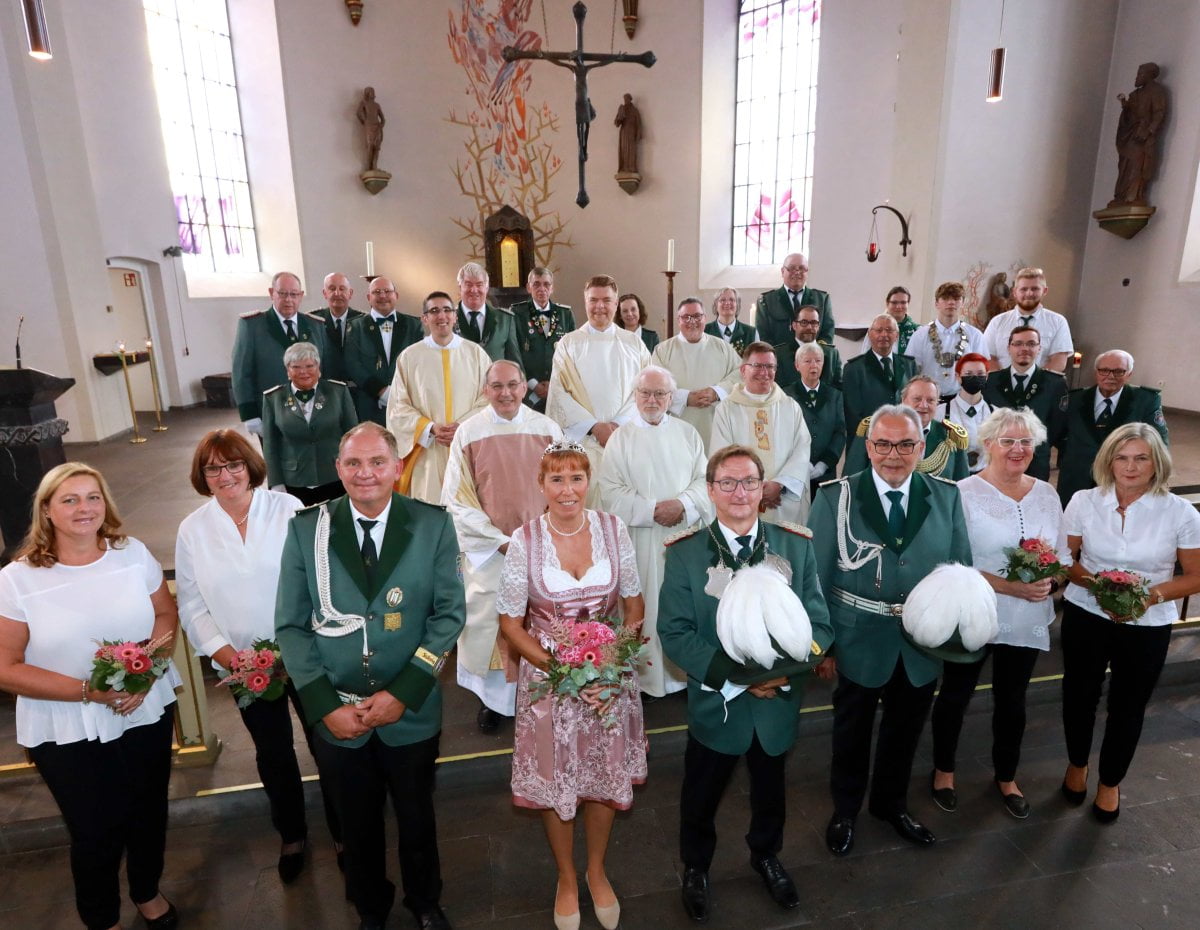 Die morgendliche Heilige Messe wartete mit einer Besonderheit auf, die es bislang in dieser Form noch nicht gegeben hat: Neben dem Präses der Bruderschaft Heinz Liesen, versammelten sich die drei Ehrenpräsides Hans Thüsing, Franz Josef Pitzen und Helge Korell, sowie der Gemeindepfarrer Ulrich Sander und Diakon Carsten Lüdiger um den Altar. Gerne hätte man auch Bezirkspräses Erich Läufer begrüßt, auf dessen Predigt man sich schon gefreut hatte. Aus gesundheitlichen Gründen musste Läufer, der schon weit über 40 Jahre Bezirkspräses des Bezirksverband Rhein-Wupper-Leverkusen ist, kurzfristig absagen.