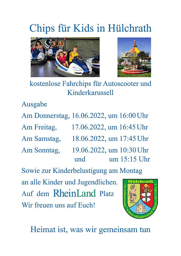 Privatleute, Schützenzüge, Unternehmen und Hülchrather Vereine haben mit ihrer Patenschaft Fahrchips erworben, und an den Schützenfesttagen kostenlos an Kinder und Jugendliche verteilt.